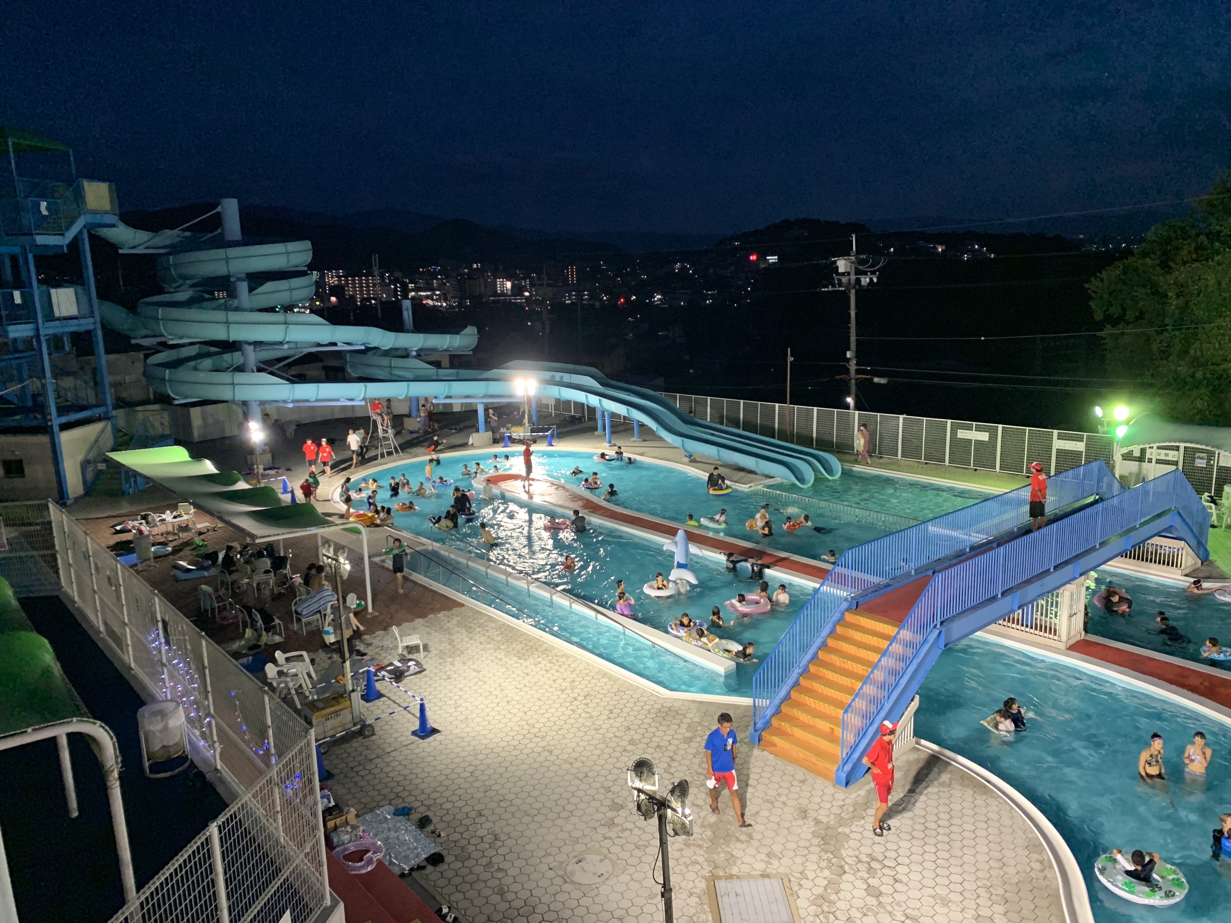 日焼けを気にせず、昼間とは違ったサンヒル屋外プールをお楽しみください。